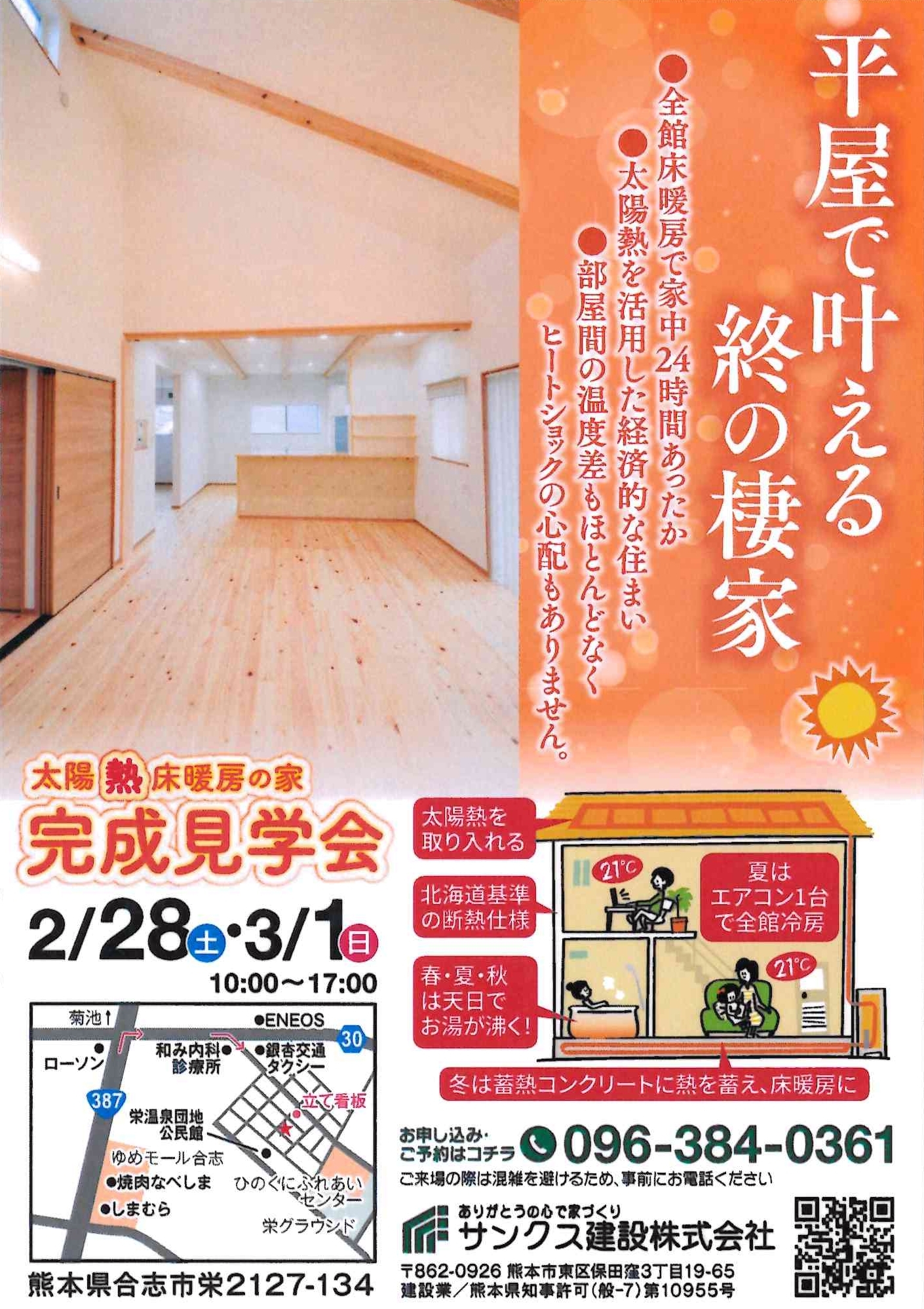今週末の28日(土)と1日(日)は、合志市栄に完成しました、35坪の平屋の完成見学会です。