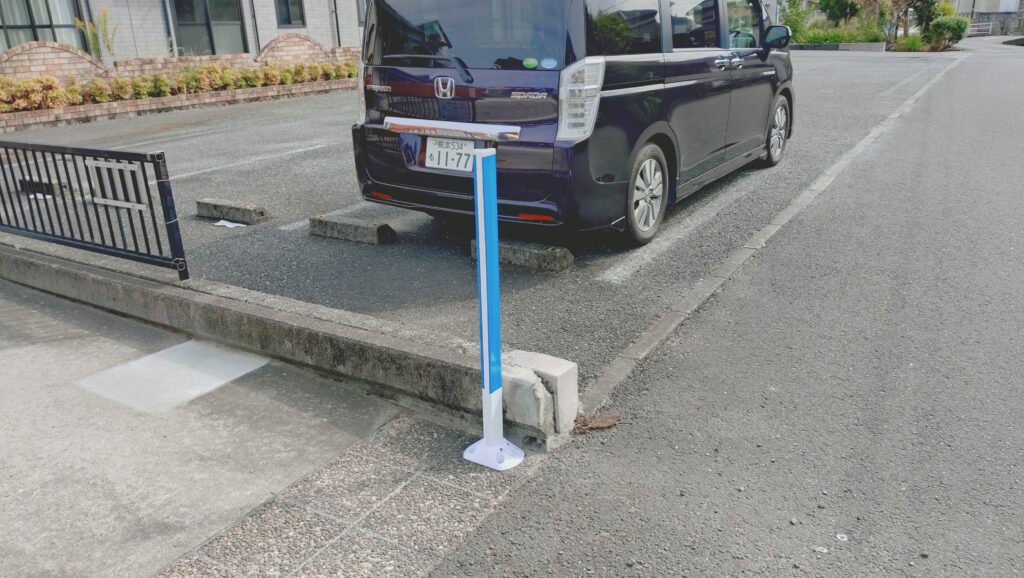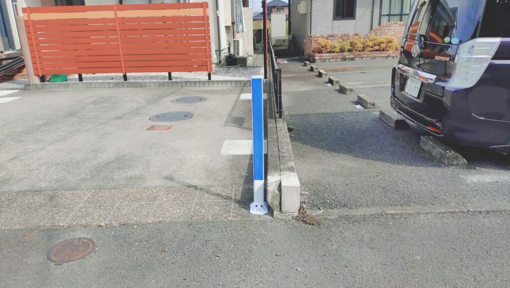 ブロックの所のポールは、自分の近所に取り付けられていたもので、夜にはとても明るく反射して見た目もブルーでかっこよかったのでお勧めしました。