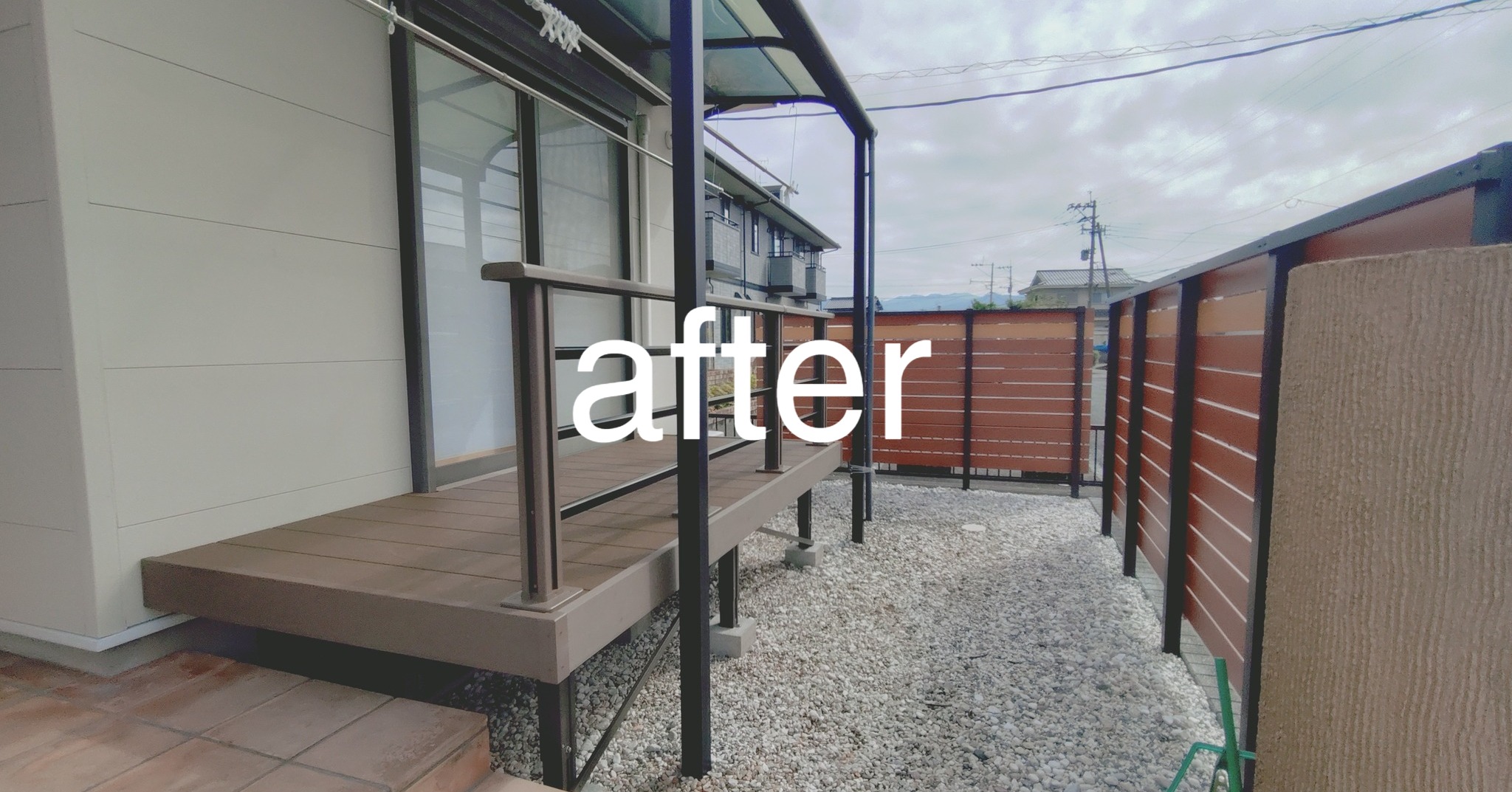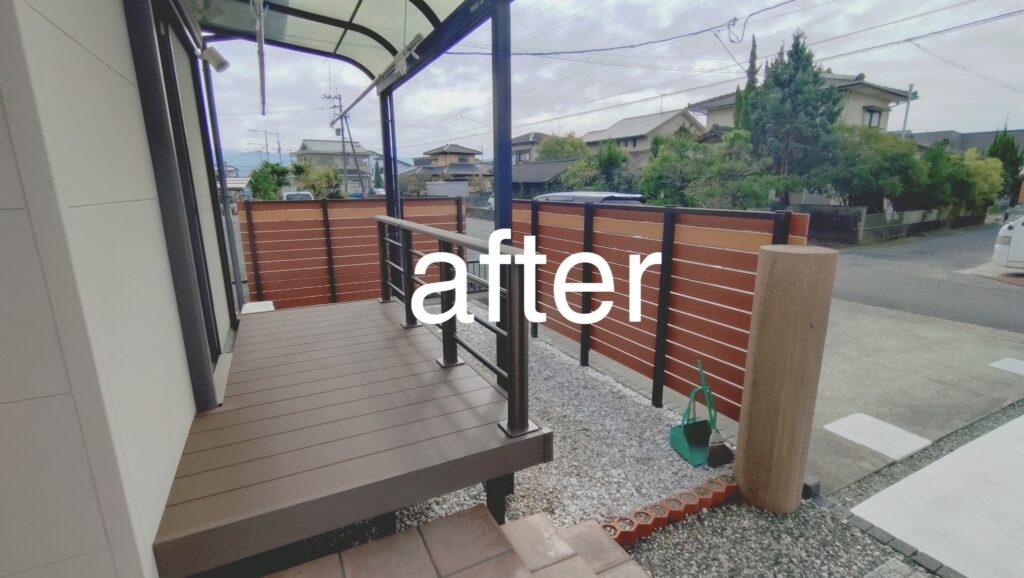 リフォーム後は、外観もすっきりして植木が無くなったことで広く使えるようになりました。